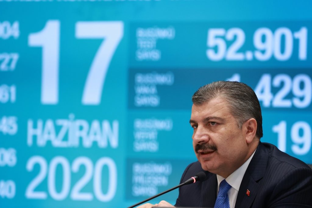 Güncel verileri kamuoyu ile paylaşan Koca, “Bugünkü vaka sayısı bin 429. Bugünkü vefat sayısı 19. İyileşen vaka sayımız bin 261. Test sayımız ise 52 bin 901. Entübe olan hasta sayısı 306. Toplam yoğun bakım hasta sayımız 745.” dedi.