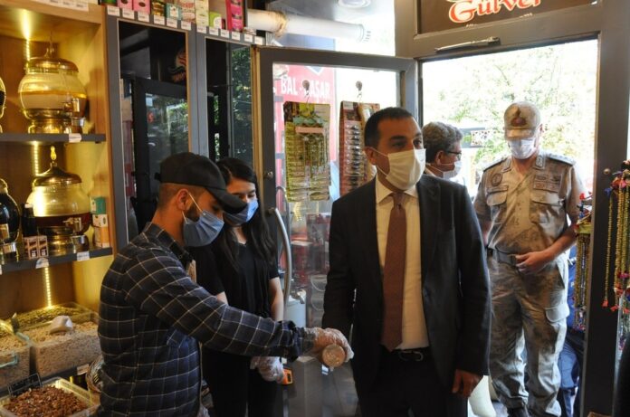 Kars Valisi Türker Öksüz, İçişleri Bakanlığının talimatıyla yapılan korona virüs denetimlerine katıldı. Vali Yardımcısı Selçuk Haskırış, İl Emniyet Müdürü Yavuz Sağdıç, İl Jandarma Komutanı Albay Hidayet Arıkan, İl Ticaret Müdürü Adem Beyribey ve muhtarlarla birlikte kentteki iş yerlerini denetleyen Vali Öksüz, iş yeri sahiplerinden alınan tedbirlere uymalarını istedi. Vatandaşlara da maske ve sosyal mesafe uyarısında bulunan Vali Öksüz, “Mutlaka maske, mesafe ve temizlik kurallarına riayet etmemiz lazım. Tedbir aldığımız ölçüde güçlüyüz. Tedbir aldığımız ölçüde yarına güvenle bakabiliriz. Toplumumuzun sağlığı, insanlarımızın hayatı buna bağlı. Çünkü biz bu virüsten dolayı insanlarımızın hayatını kaybettiğine üzülerek şahit oluyoruz. İstiyoruz ki bu süreç biran önce tamamlansın ve biz hepimiz normal hayatımıza dönelim. Bu denetimlerimiz devam edecek. Bunu ifade etmek istiyorum. Onun için herkes kurallara uymak konusunda azami gayret göstersin” dedi.
