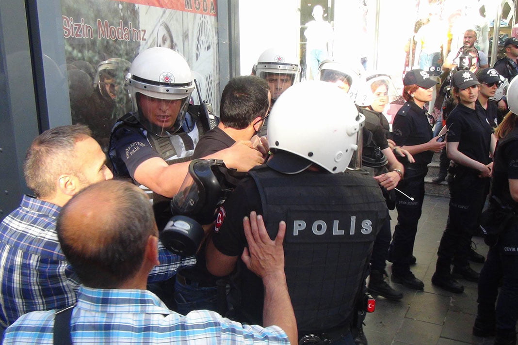 Diyarbakır’da KESK’in, valiliğin toplantı ve yürüyüş yasağına rağmen yapmak isteği izinsiz basın açıklamasına polis müdahale etti, 30 kişi gözaltına alındı