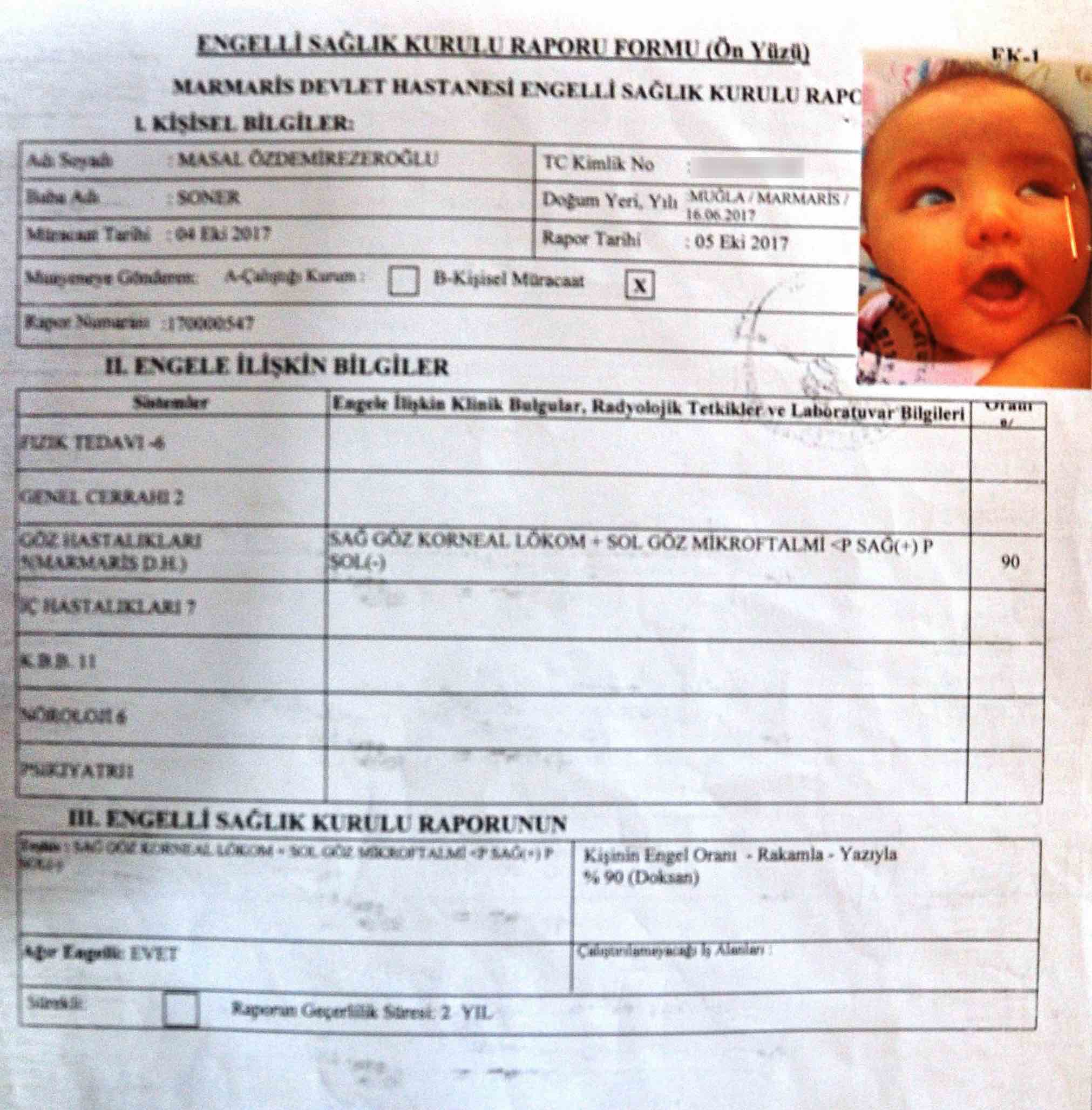 Marmaris’te doğuştan iki gözü görmeyen Masal bebeğin sağ gözüne yapılacak olan kornea nakli ile görebilme imkanı var. Sol gözünün hiç göremeyeceği öğrenilen bebeğin tek ışığı sağ gözü olacak. Masal bebeğin sağlığına kavuşması için beş buçuk aydır uğraş veren aile Masal’ın tedavisinin 4 Aralık’ta İstanbul’da başlayacağını belirtti.