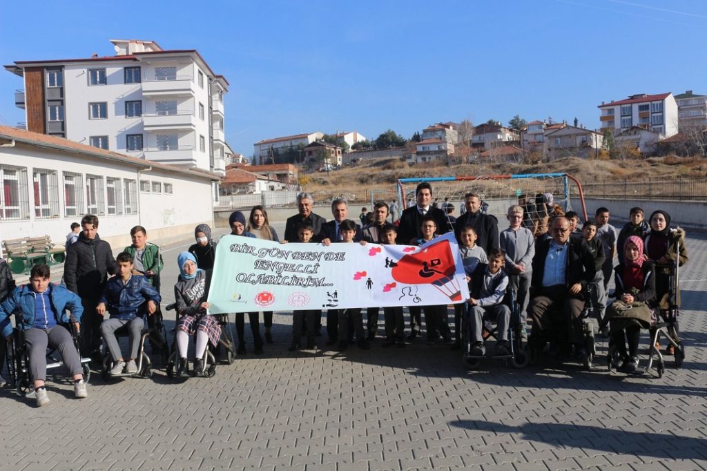 Suluova Şehit Recep İnce İmam Hatip Ortaokulu öğrencileri göz bandajı takıp, tekerlekli sandalyeye oturarak empati yaptı, kendilerini engellilerin yerine koydu.