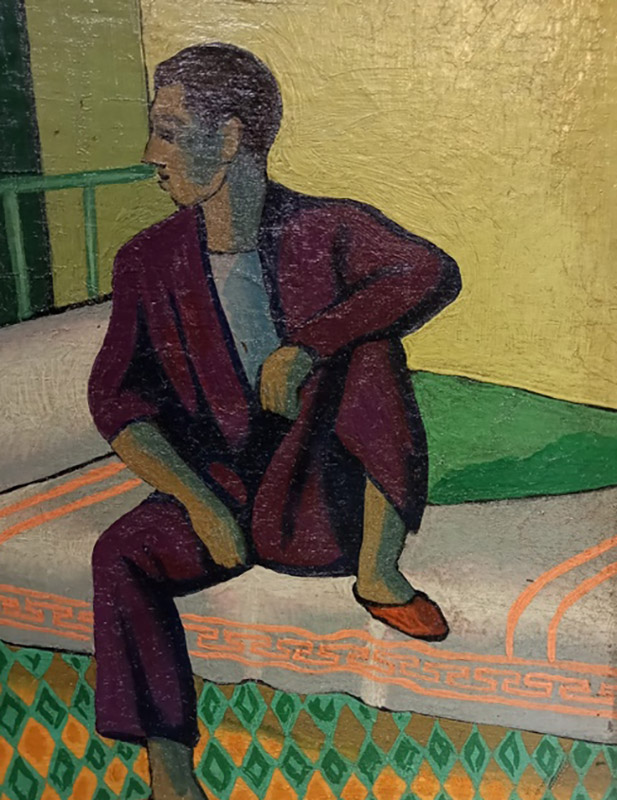 Adamın gölgede kalan yüzü, odanın yeşil rengine benziyor. Kendi iç dünyasına dalmış adam, olanaksızlıklar ağına sıkışmış duygularını düşünmektedir belki. Tüm duruşuna sinmiş melankoli, yalın döşenmiş odada dikkat çekiyor. Ressamın amacı da biraz bu, figürlerin duruşlarıyla bize aralarındaki gerilimi hissettirmek belki de.
