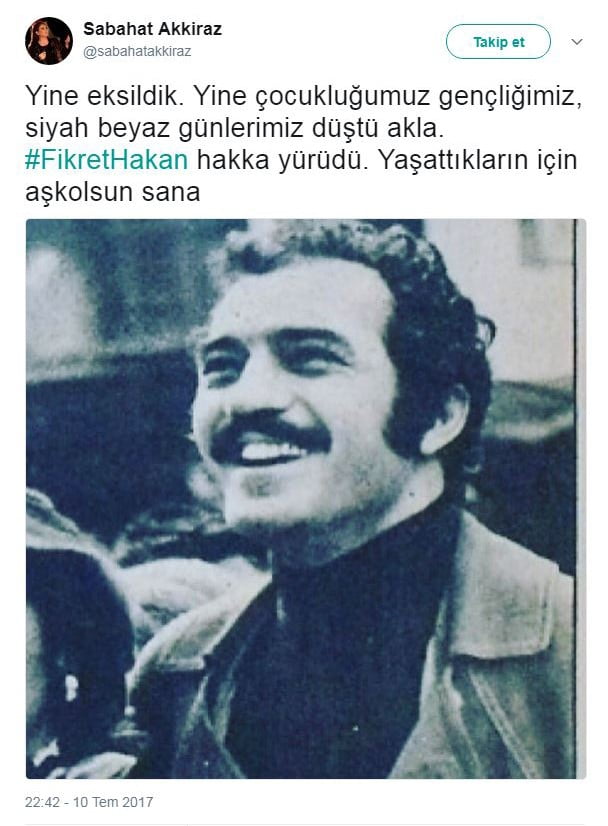 Ünlü isimler Fikret Hakan için sosyal medya hesaplarından taziye mesajları paylaştı.