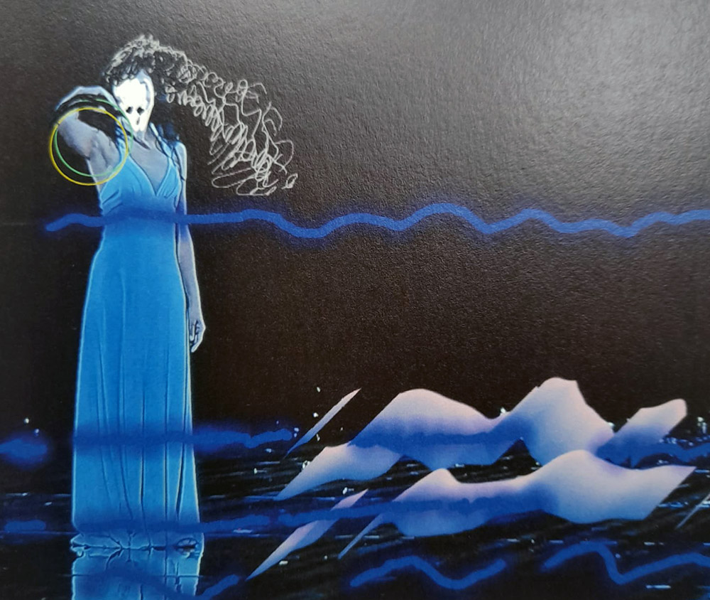 Denizi anlatan diğer imge ise kuru kafalı kadın bedenidir. Kadın deniz mavisi bir elbise giymiş, eliyle iç içe girmiş iki çember tutmaktadır. İki âşığı simgeleyen iki çember, âşıkların kaderinin denizin ellerinde olduğuna ve bu kaderin ölümle sonuçlanacağına işaret eder. Geçilmez sınırı anlatan çember sonsuzluğa gönderme yapar.