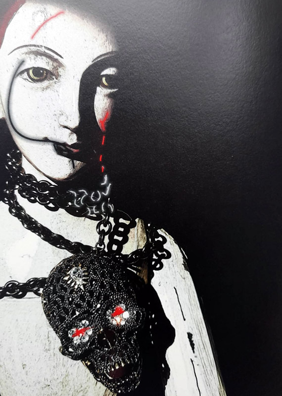 Bilge Alkor’un “Matmazel Scuderi” yorumunda, üstüne kan bulaşan değerli mücevherlerle kuru kafa formunda pendantlar bir aradadır. Kuru kafa özellikle Orta Çağ’da veba salgını nedeniyle kitlesel ölümlerin yaşandığı dönemde resim ve heykel sanatında sıkça kullanılan metafordur. Ars Moriendi (İyi Ölme Sanatı), Memento Mori (Ölümlü Olduğunu Hatırla) demenin bir başka yoludur. Mücevherin kuru kafa formunda ifadesi ise dünyevi zenginliğin ölümle son bulacağına, tek gerçeğin ölüm olduğuna gönderme yapar. Ölüm-yaşam / değerli- değersiz diyalektiğinin bir arada bulunduğu resimlerde tüm ışıltısına rağmen mücevherler ölümü hatırlatır. Öyküyü sıra dışı bir hâle dönüştüren ise katilin kuyumcu olmasıdır. En son kuşku duyulacak kişi hem hırsız hem de katildir.