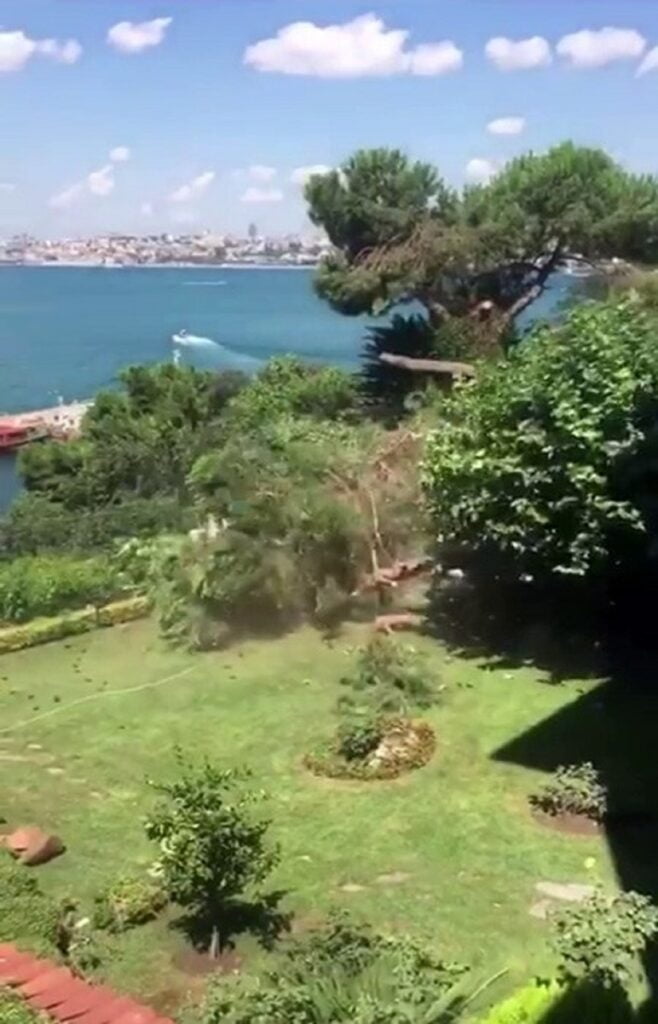 Üsküdar’da boğaz manzaralı bir binanın bahçesindeki asırlık çam ağacı kesildi. Asırlık çam ağacının kesildiği anlar mahalle sakinlerinin cep telefonu kameralarına saniye saniye yansıdı.